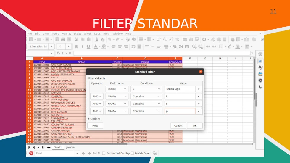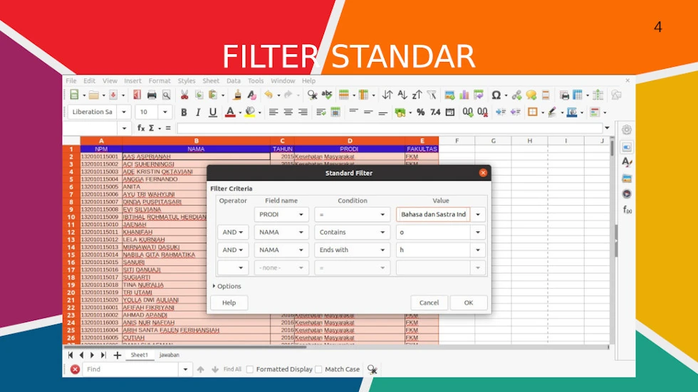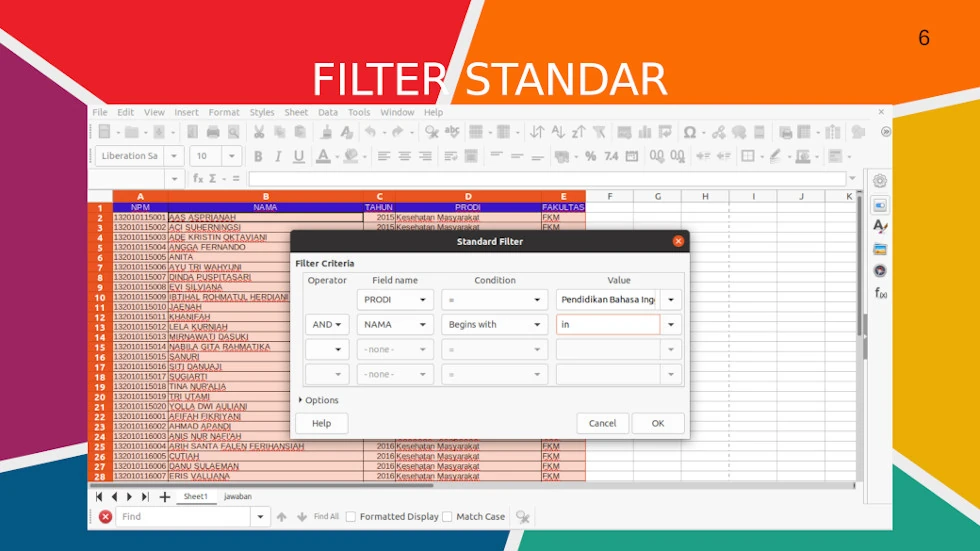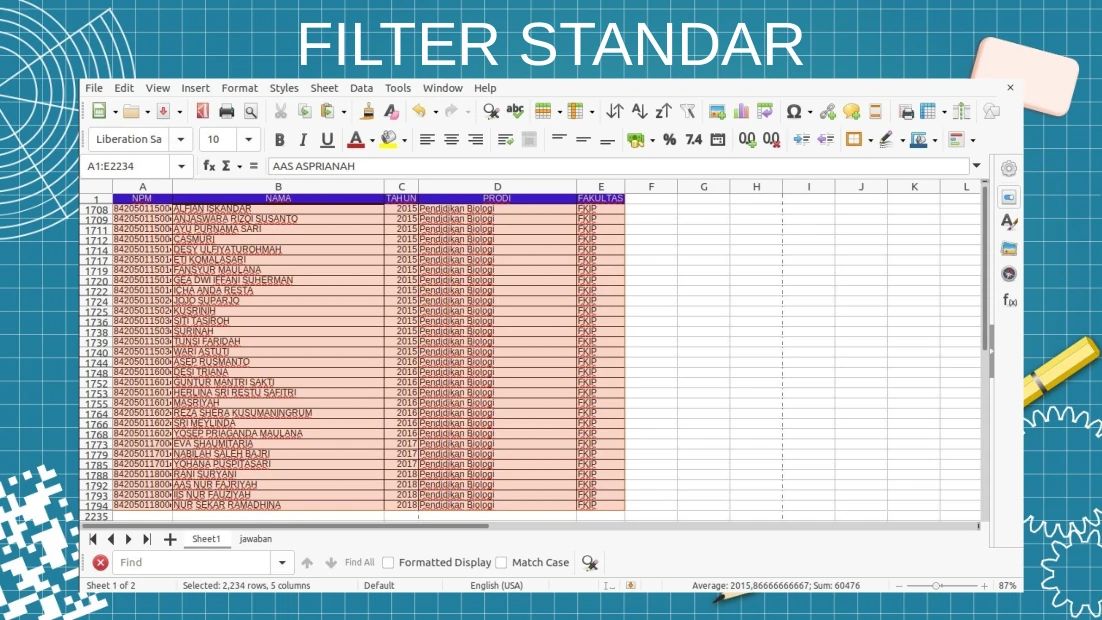 - Buka file filter-standar dengan aplikasi LibreOffice Calc.