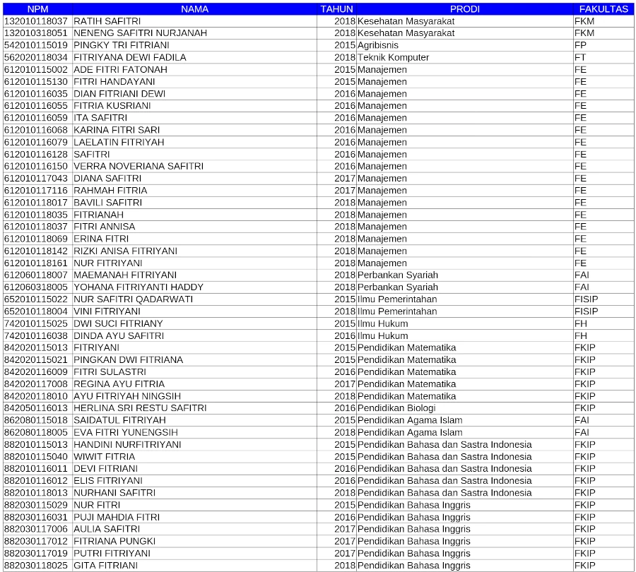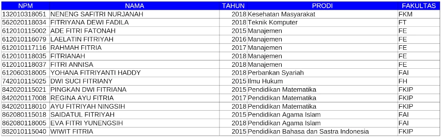 - Perhatikan bahwa setiap nama mahasiswa yang tercantum dalam gambar tersebut memiliki unsur nama FITRI.