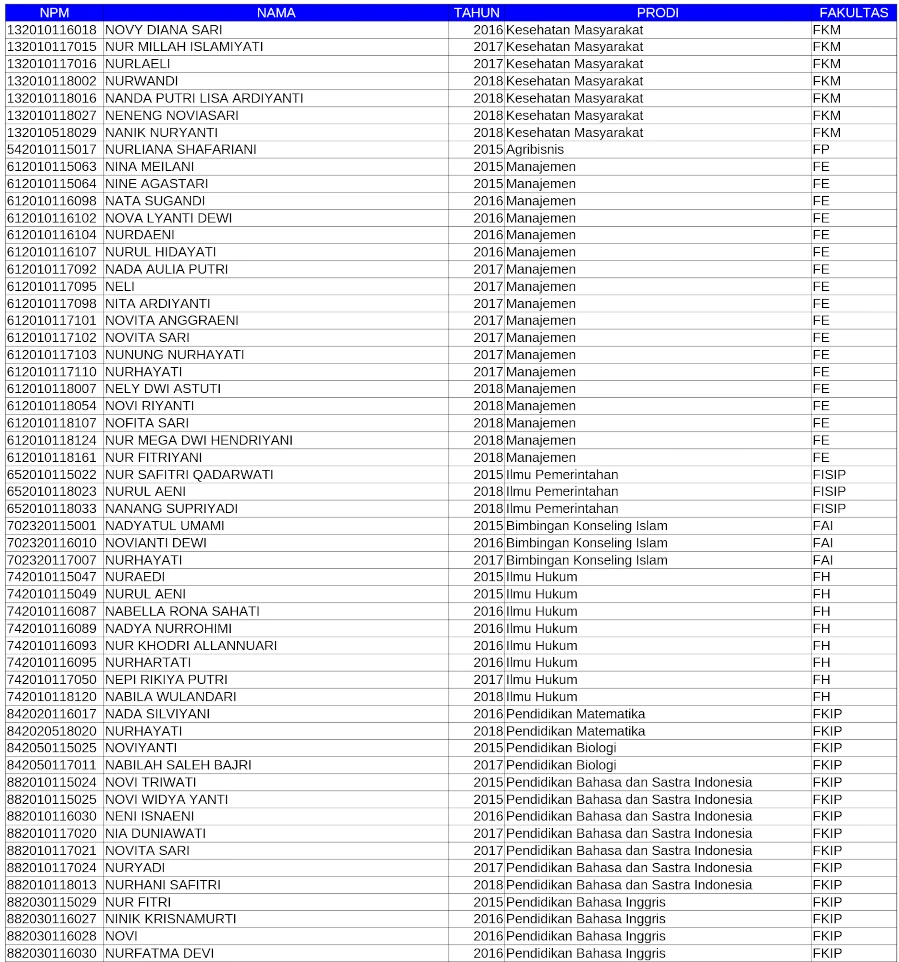 No. | Nama Mahasiswa | NPM | Program Studi | Tahun Masuk |